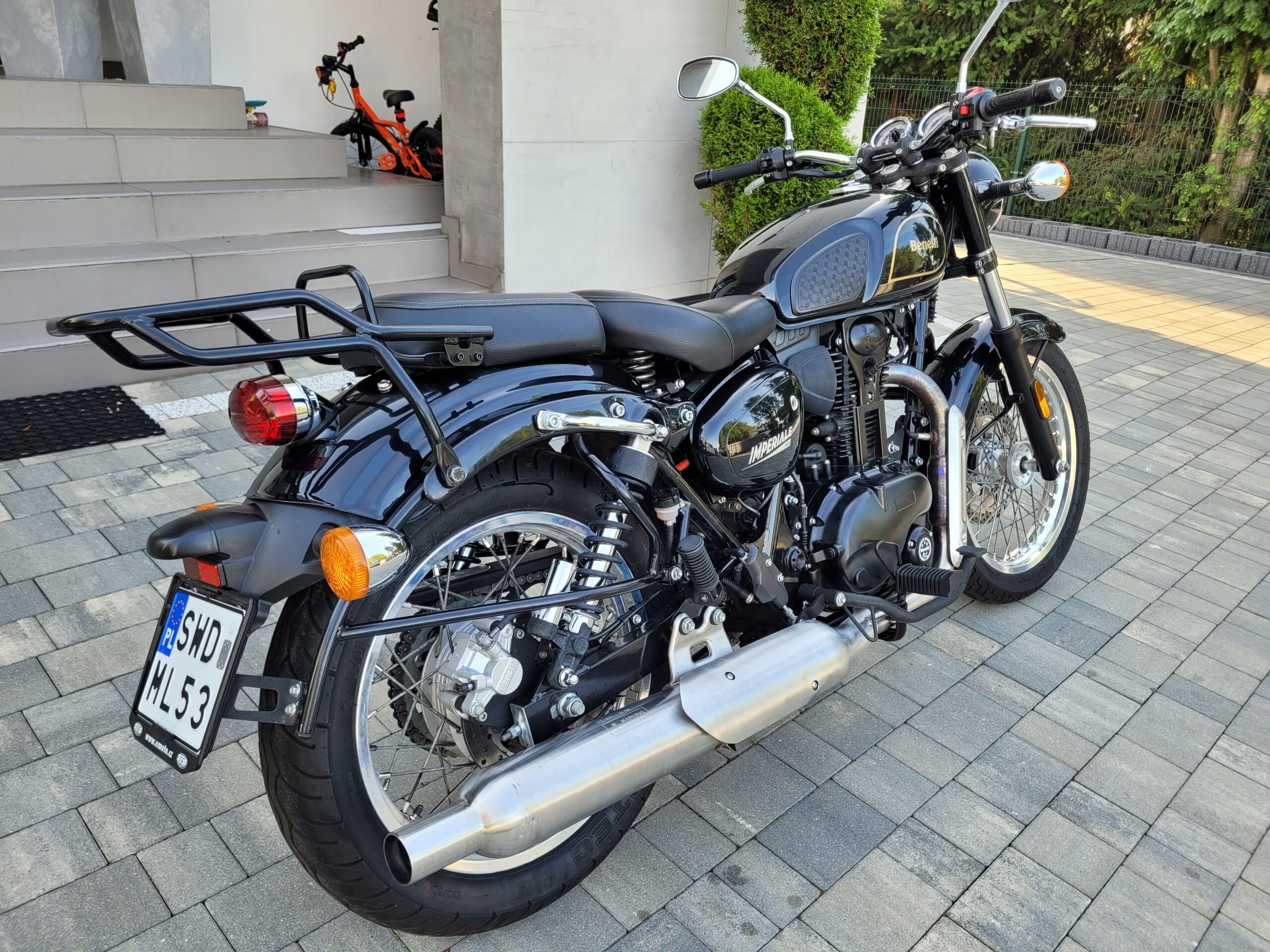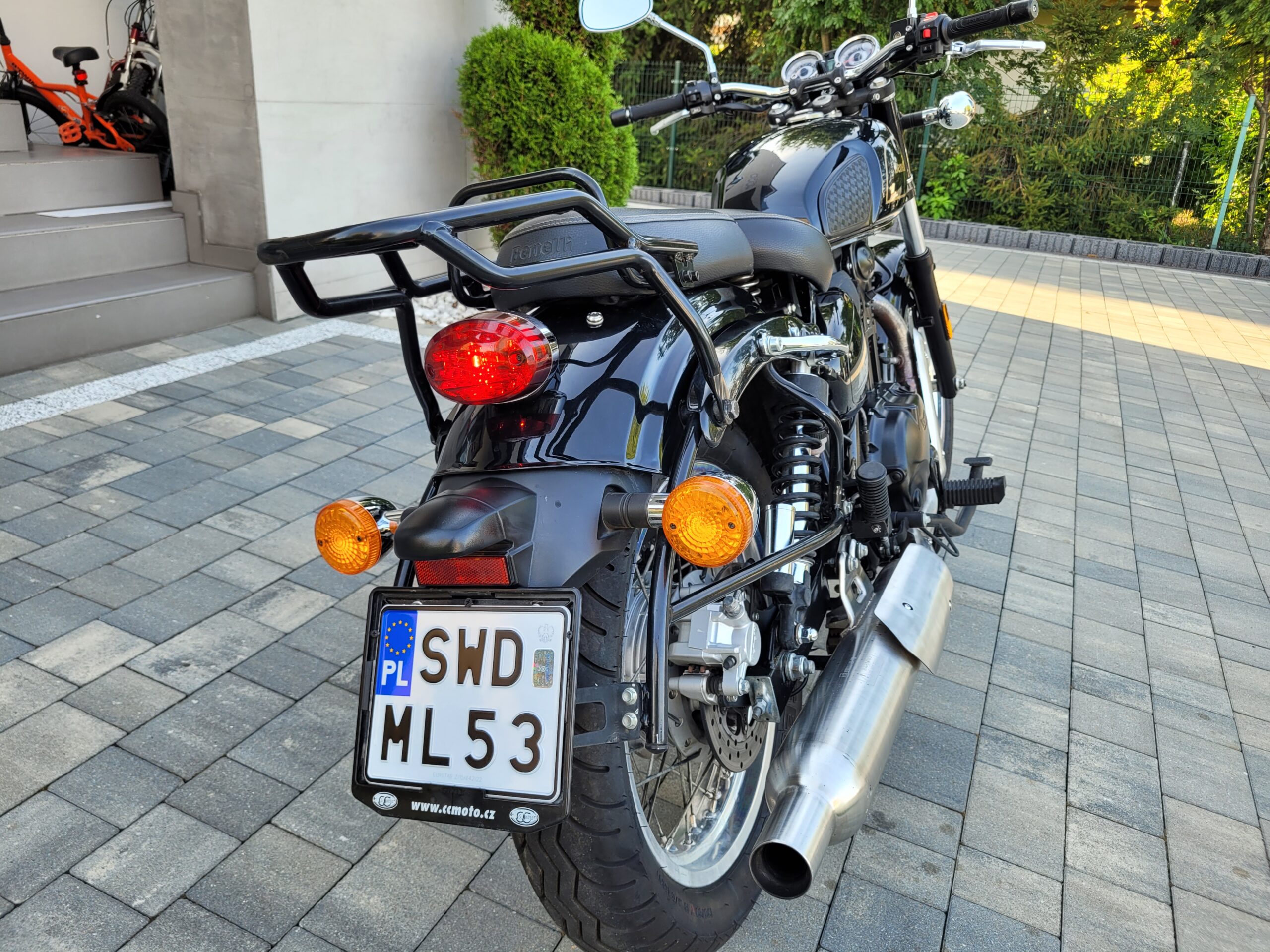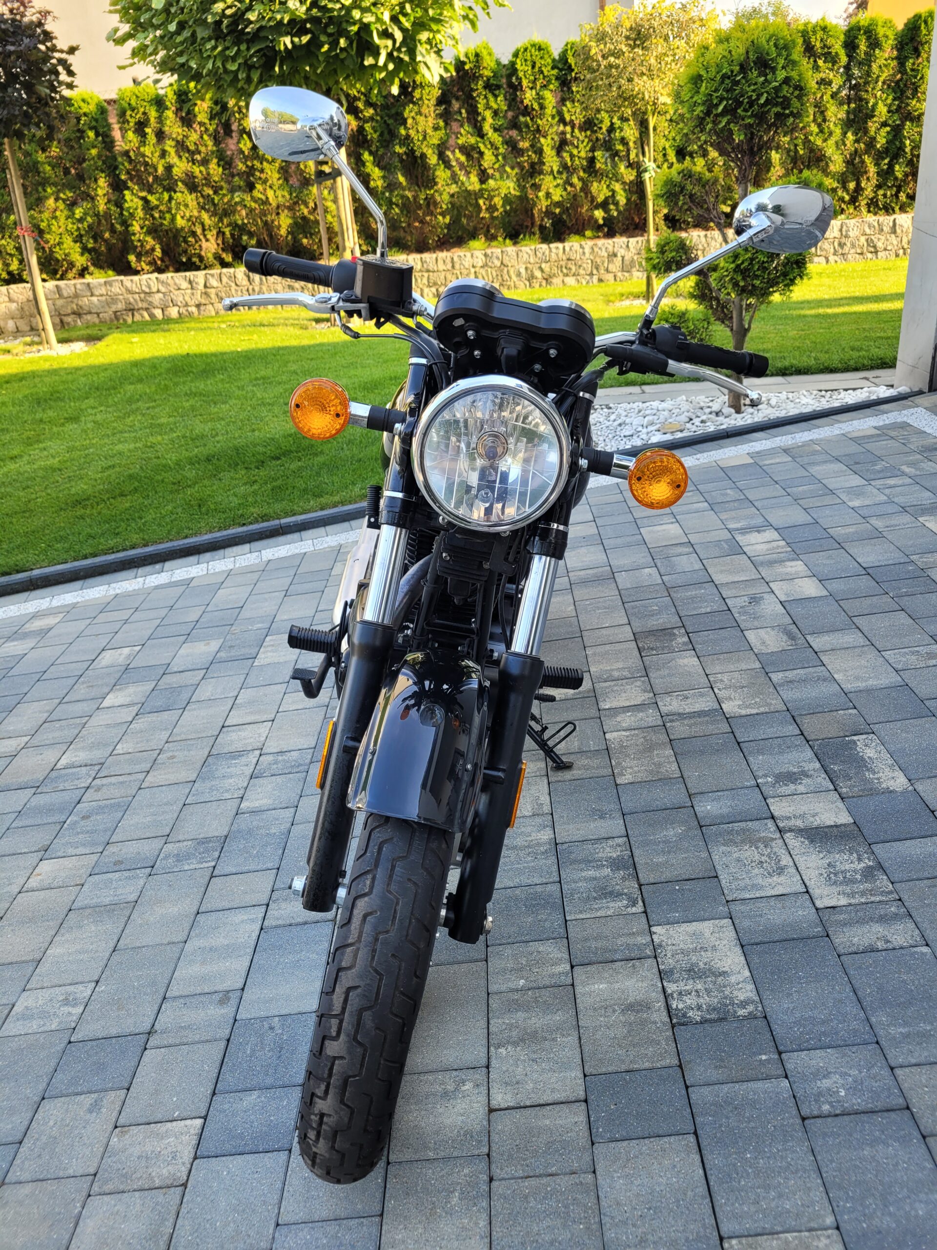 • Stylistyka: Klasyczny wygląd „retro/vintage”, okrągła lampa, chromowane akcenty, szprychowe koła, obły bak i klasyczna rama kołyskowa.